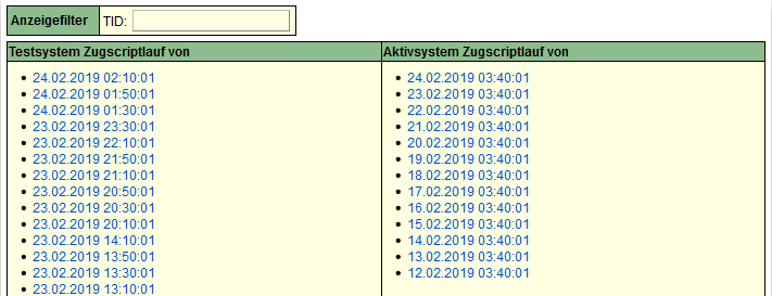 Die Ausgaben der Zugscriptläufe werden einige Tage gespeichert.