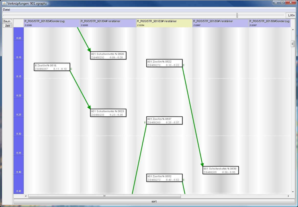 Zur Übersicht über die Verknüpfung der Zugtemplates und ihrer Züge kann ein Zugverknüpfungsgraph erzeugt werden.